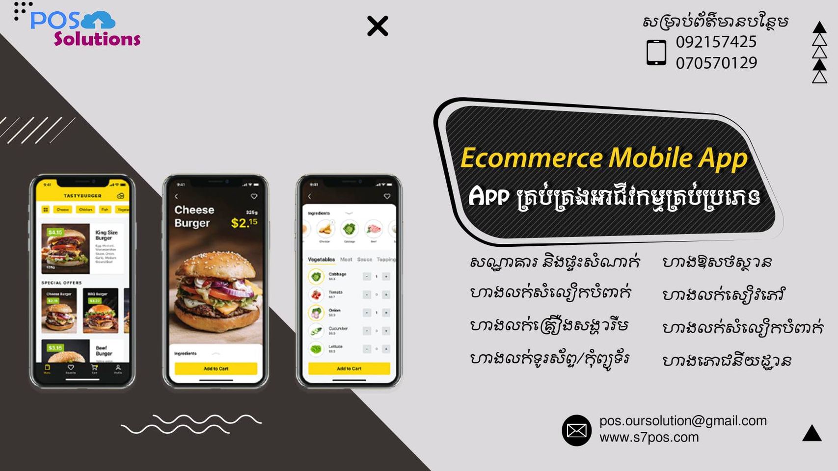 Pos Solutions គឺជាក្រុមហ៊ុន Software Development ដែលធ្វើការផ្តោតទៅលើការអភិវឌ្ឍន៏កម្មវិធី ប្រព័ន្ធគ្រប់គ្រងការលក់ បង្កើតនិងអភិវឌ្ឍន៏កម្មវិធីទូរស័ព្ទដៃដែលប្រើប្រាស់ជាមួយនឹងបច្ចេកវិទ្យាចុងក្រោយបំផុត។ ជាការពិត សព្វថ្ងៃនេះយើងបានធ្វើឱ្យអតិថិជនជោគជ័យជាង 60 នាក់នៅក្នុងអាជីវកម្មរបស់ពួកគេ។ Pos Solutions តែងតែផ្តល់ជាជំនួយ និងដំបូន្មានដល់ក្រុមហ៊ុនដែលទិញឬប្រើប្រាស់ផលិតផលឬសេវាកម្មរបស់ពួកយើងជារៀងរហូត។